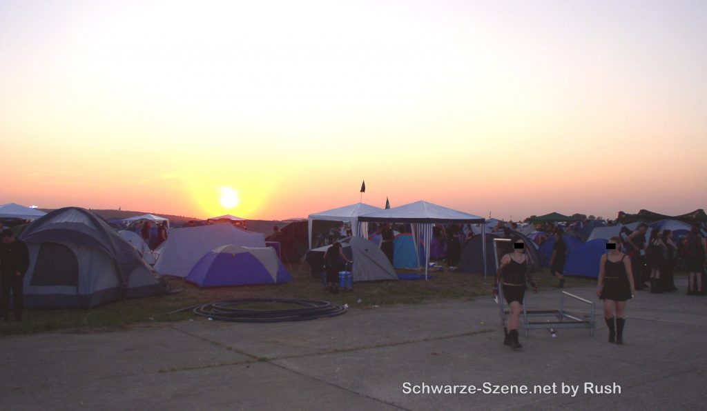 Son­nen­un­ter­gang über dem Zelt­ge­län­de