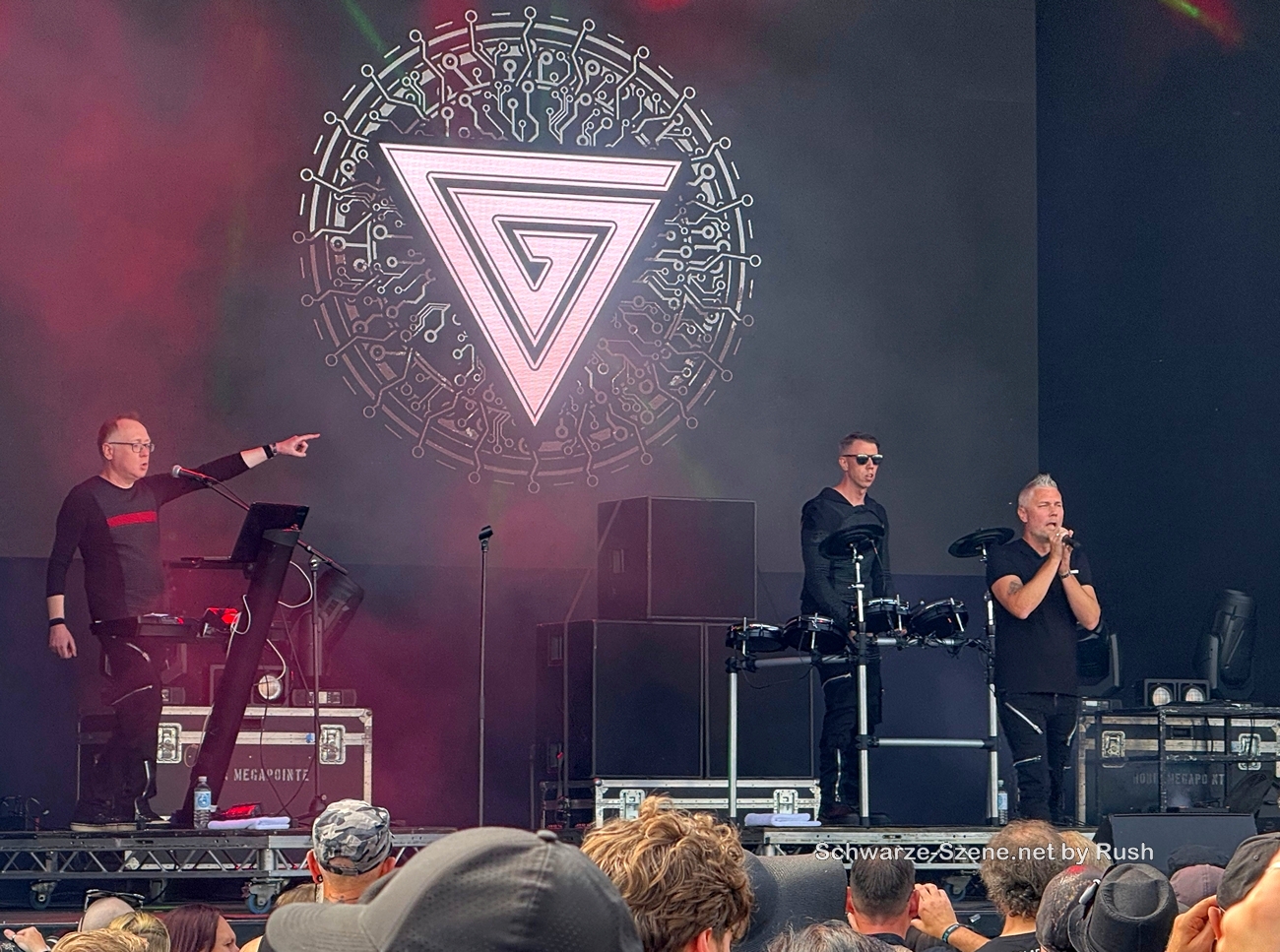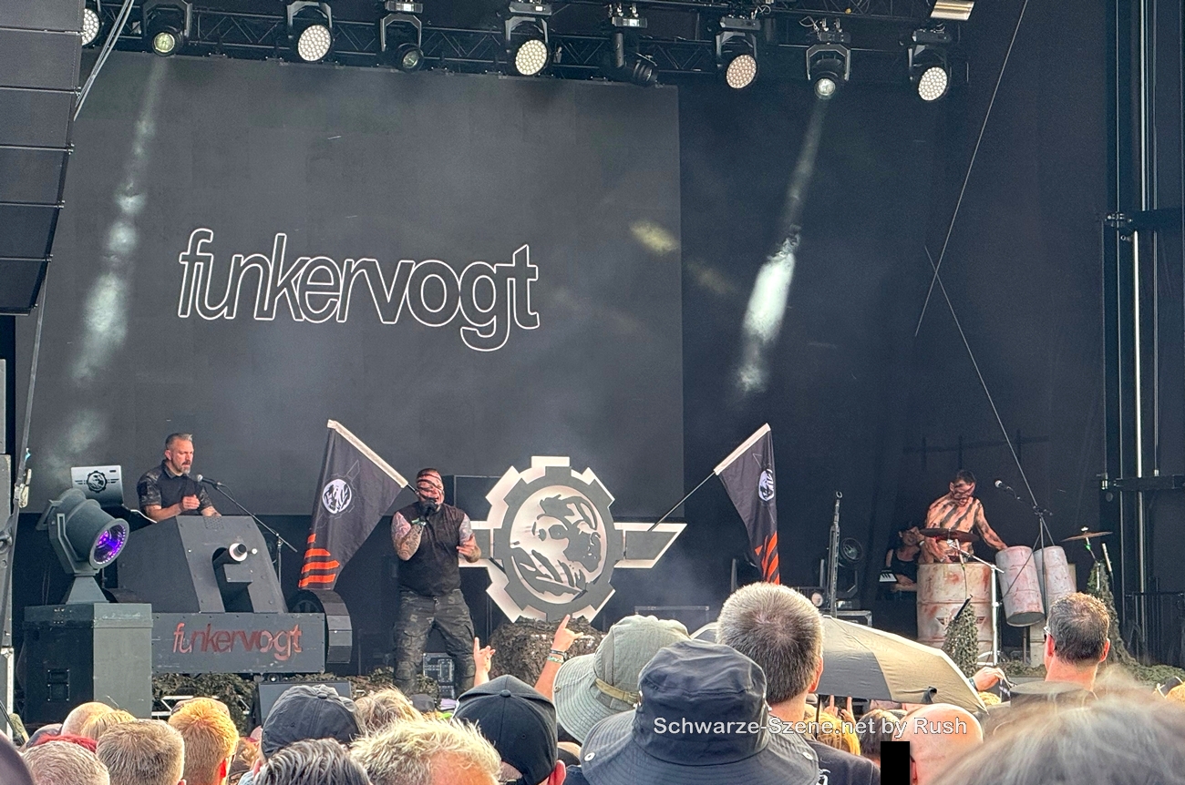 Dann für Funker Vogt wieder zur Club Stage. Die Band arbeitete sich über Jahre wieder zurück nach dem krankheitsbedingten Ausstieg des Sängers und einer Fehl-Neubesetzung mit Folgen. Guter Elektro, aber für mich ein Auftritt, der mich nicht mehr so begeistern konnte wie früher. An diesem Wochenende (und dem folgenden beim Stella Nomine) führten wir einige Gespräche zu diesem Thema: wann hat eine Band ihren Zenit überschritten? Ein Bergwanderer aus dem Erzgebirge sagte: „Kennt man ja, zuerst geht’s hoch, aber irgendwann muß man wieder runter, da kommt der Abstieg.“ Für mich ist Funker Vogt so eine Band, die den Zenit überschritten hat. Wir bekamen nicht mit, welche Hits ggf. zum Ende gespielt wurden, weil wir zu Witt rüber pilgerten.