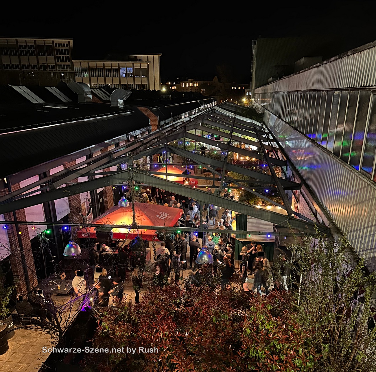 Dann noch so eine Dissonanz: während z.B. im Podcast ‘Schwarzgesagt’ einmal alle 5 Minuten (gefühlt) der Begriff ‘Baby Bats’ fällt (oder häufig in diesen Interviews), fehlten diese Mini-Fledermäuse beim Mesh-Konzert – wie so oft bei Events der Schwarzen Szene der letzten Jahre. Eine Freundin meiner Frau meinte: “Puh, nicht die Ältesten hier…” Dann merkte sie, 10 Jahre jünger als wir, daß das komisch klingt und fügte hinzu: “Ja, selbst IHR nicht…” Stimmt, ich würde grob schätzen, der Altersdurchschnitt müßte so zwischen 35 und 40 gelegen haben, Corri May sagt, “eher 40–50”, aber “Gesichter des Todes” (AKA Ü60) waren doch auch selten; aber keine Angst, nächstes Jahr stoße ich dann hinzu. 😉